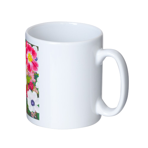 転写紙にインクをプリントし高温の熱をかけることで、インクを気化させマグカップに浸透させる加工方法です。マグカップに直接浸透させることで、表面には印刷した違和感(凸凹)が全く残りません。