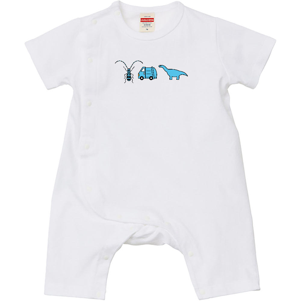 【青いもの】ベビーロンパース|80cm|ルリボシカミキリ・ゴミ収集車・アルゼンチノサウルス