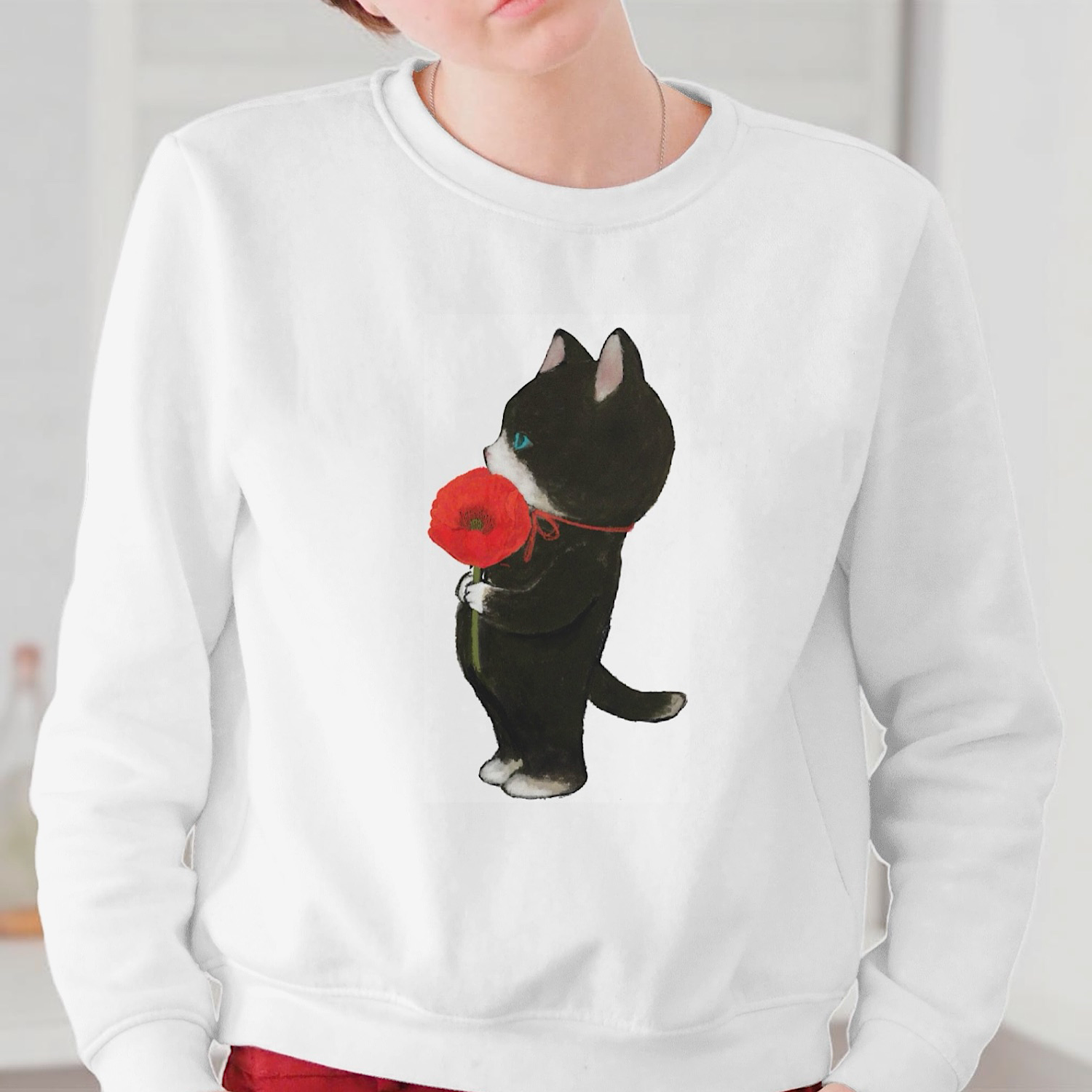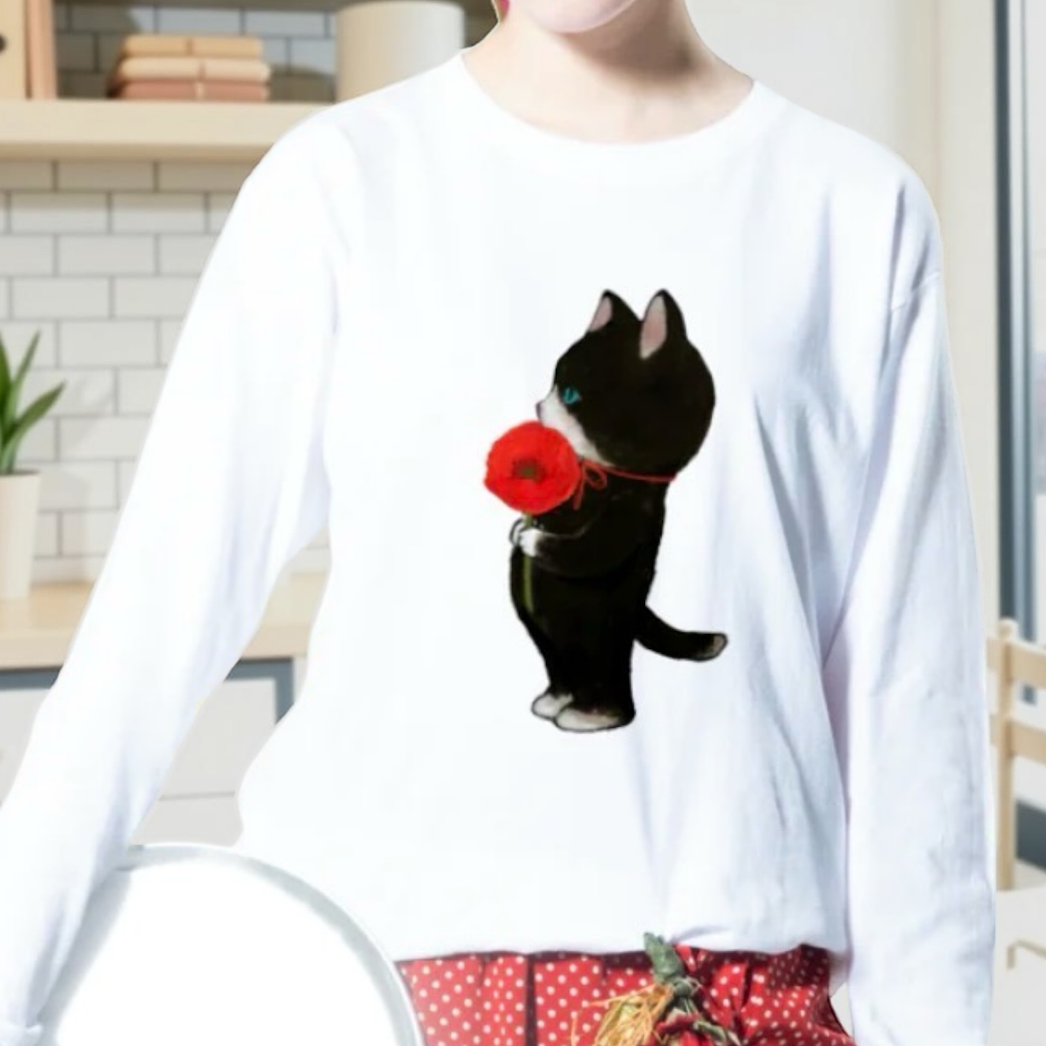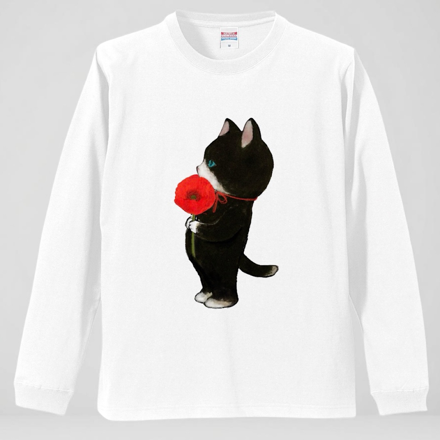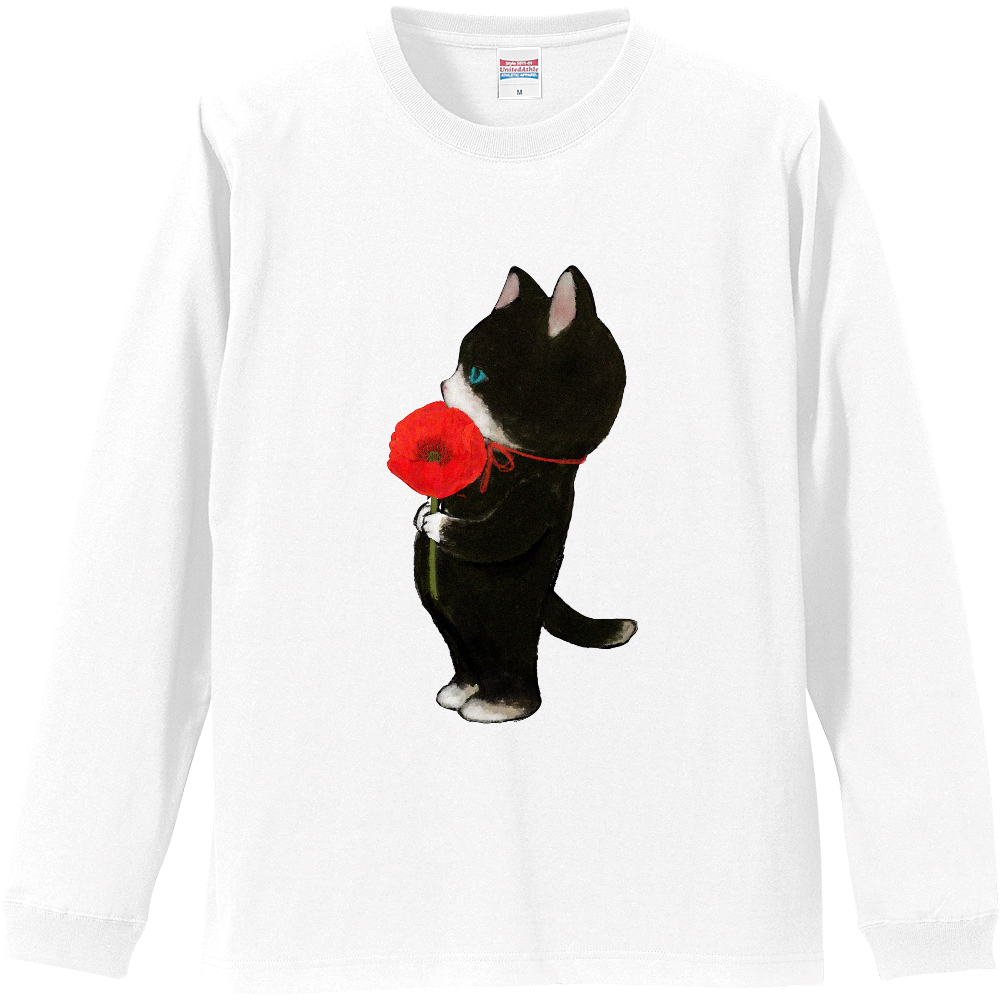 ★送料無料★雛罌粟と子猫長袖 Tシャツ(受注制作/ユニセックスS〜XXL)