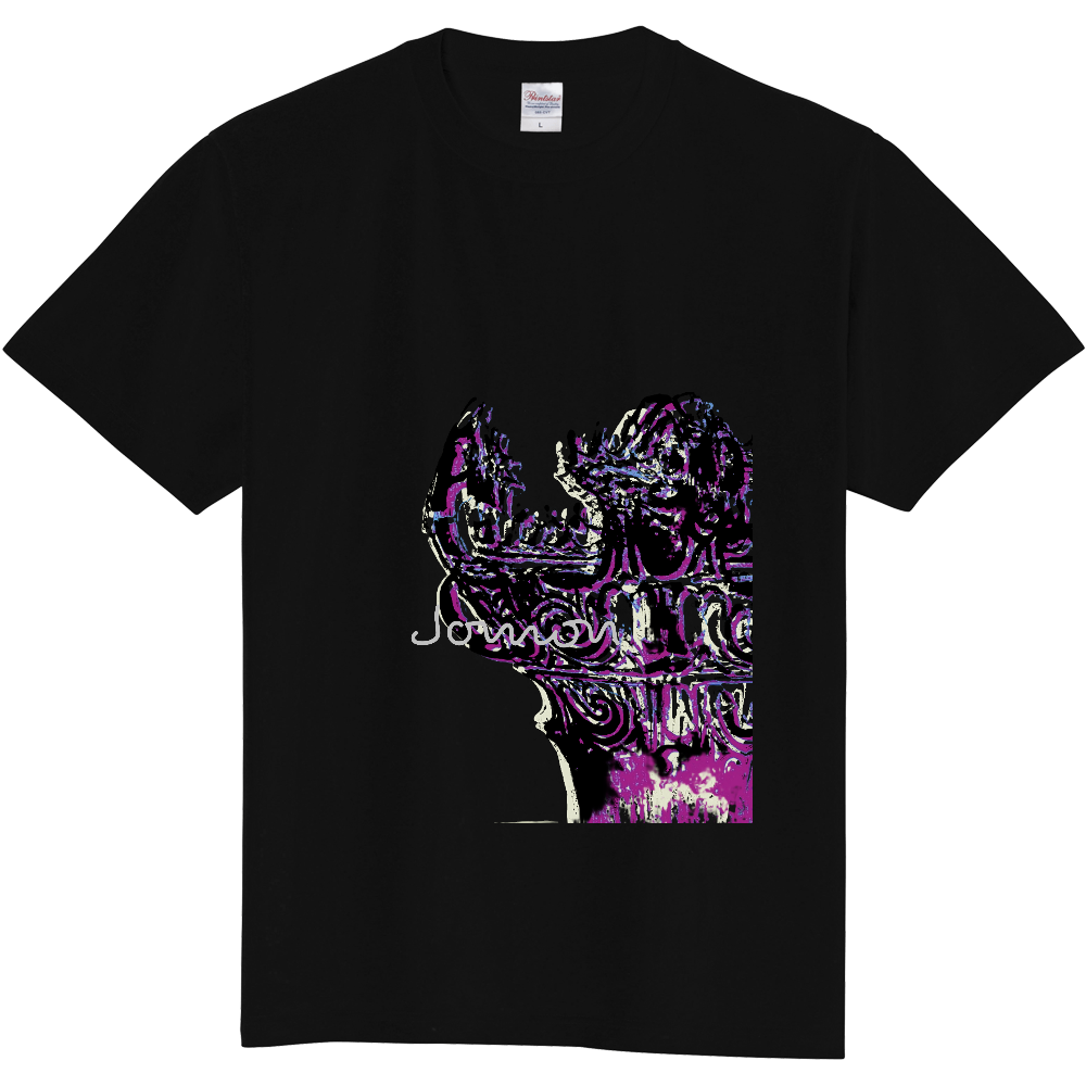 アンダーグラウンドな空気をまとったこの一枚は、古代と未来が交差するヴィジュアルアート。
