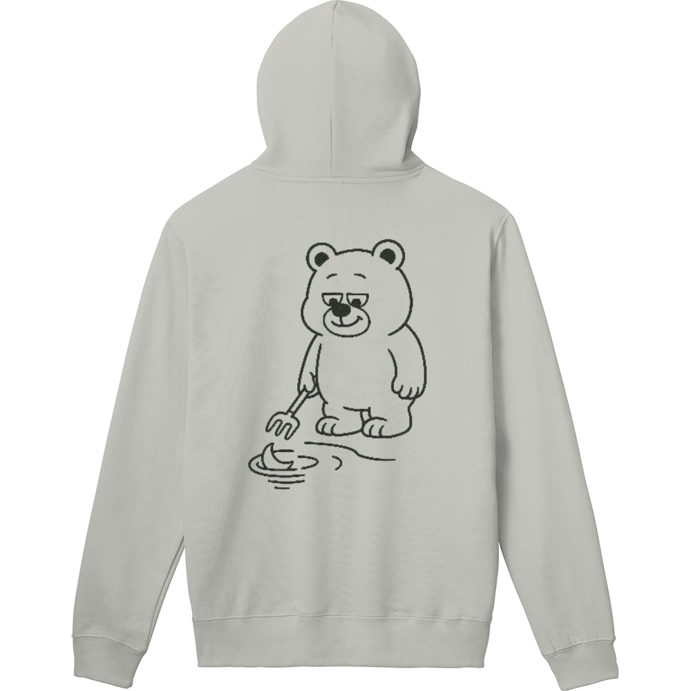 イギリスの伝承から着想した熊手を持つ熊のイラストをプリントしました。