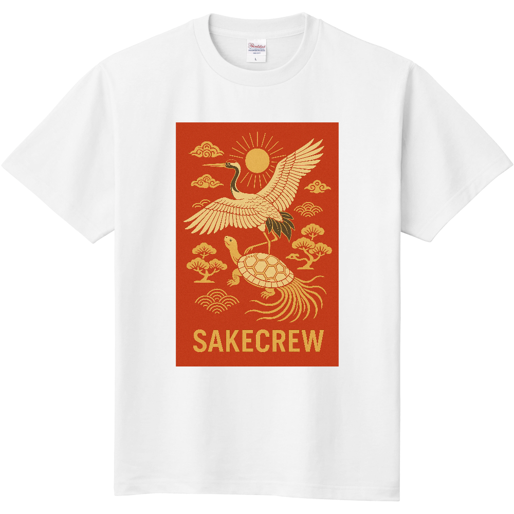 日本の伝統的な吉祥モチーフである 鶴と亀 を、現代的なグラフィックに落とし込んだSAKECREWオリジナルデザイン。