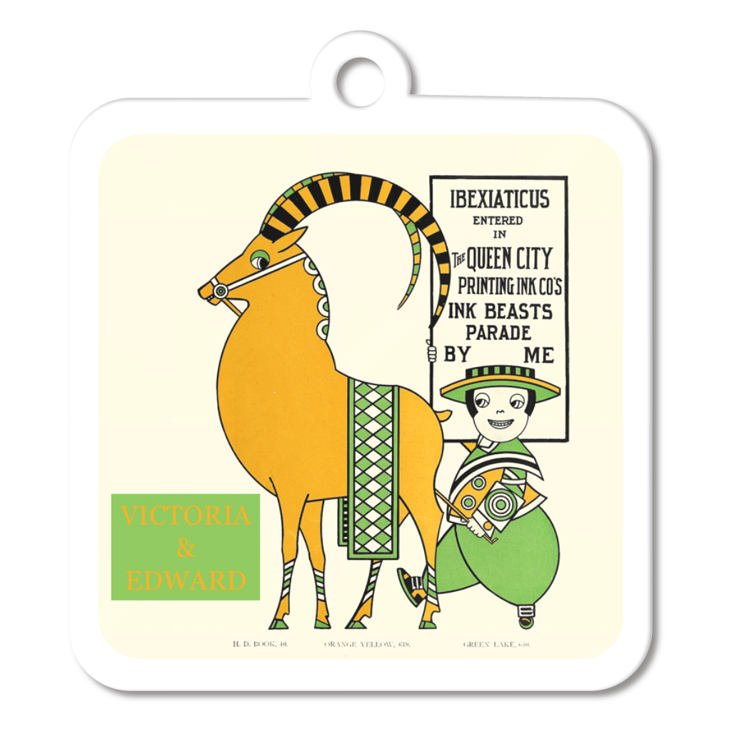 米国のイラストレーター、オーガスタス・ヤンソンが描いた、インクメーカーの広告をデザインしたキーホルダーです。