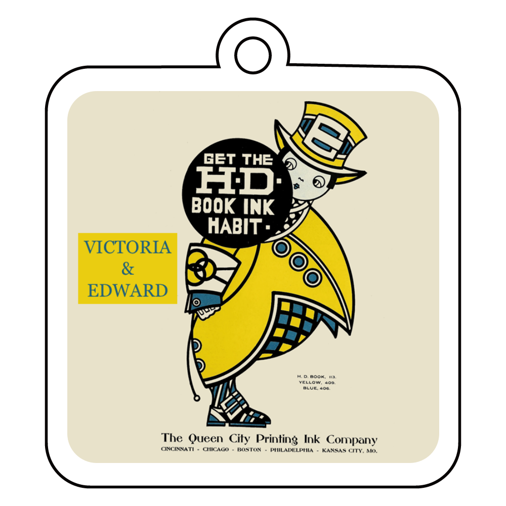 米国のイラストレーター、オーガスタス・ヤンソンが描いた、インクメーカーの広告をデザインしたキーホルダーです。