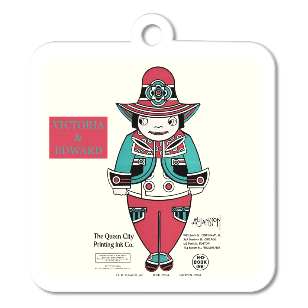 米国のイラストレーター、オーガスタス・ヤンソンが描いた、インクメーカーの広告をデザインしたキーホルダーです。