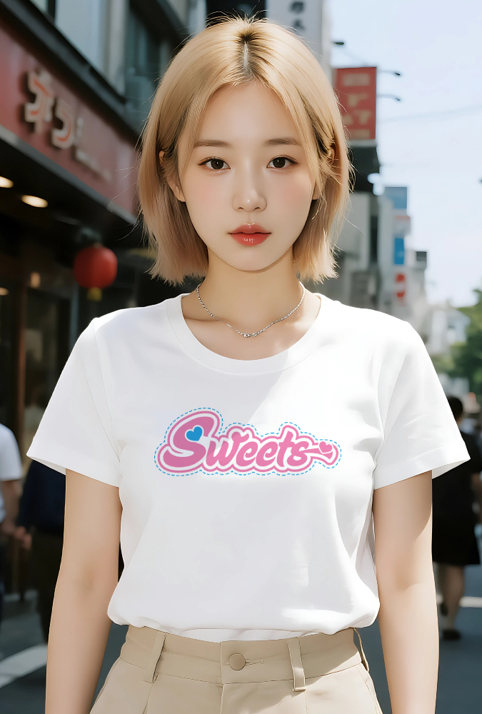 甘くてかわいいものが大好きなあなたへ。このロゴは、ゆめかわいい世界観や、韓国ファッションのテイストにもぴったり。シンプルなTシャツやパーカーにプリントすることで、日常のコーディネートに遊び心とキュートさをプラスしてくれます。