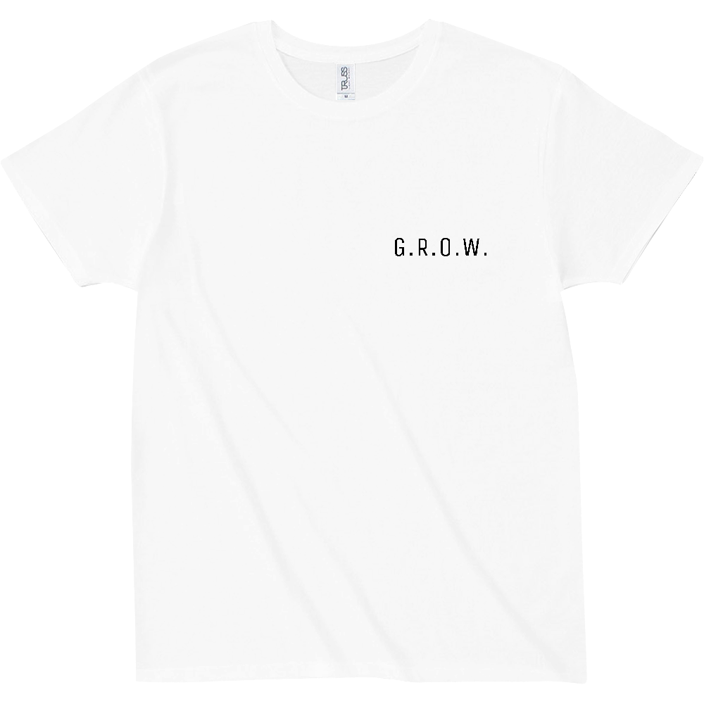 正面の胸元にG.R.O.W.(ブロック体)のシンプルなロゴを配したシンプルなデザイン。
