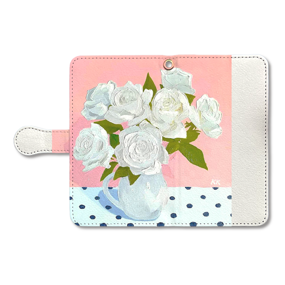 手帳部分:ポリウレタン樹脂(合成皮革)/ホワイト スマホ本体ケース:ポリカーボネート樹脂(プラスチック)/ホワイト 留め具部分:磁石(カバーに内蔵)