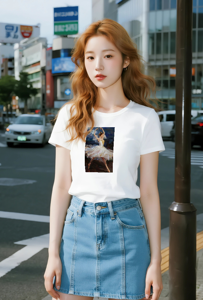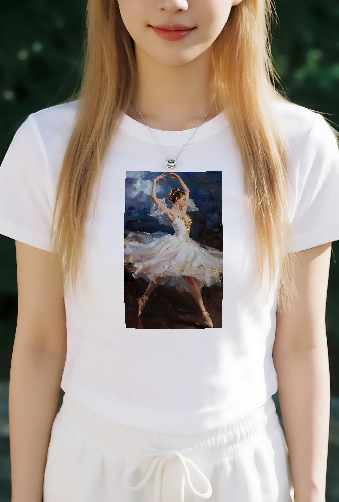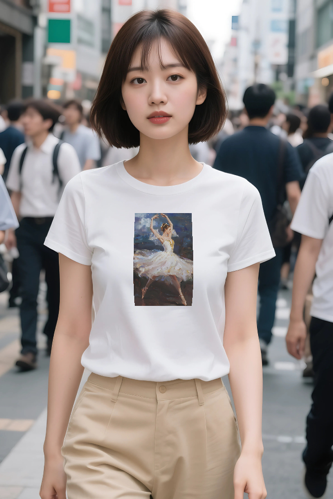【優雅なバレリーナアートTシャツ】クラシックバレエの美しさ、華やかな舞台を思わせる気品デザイン