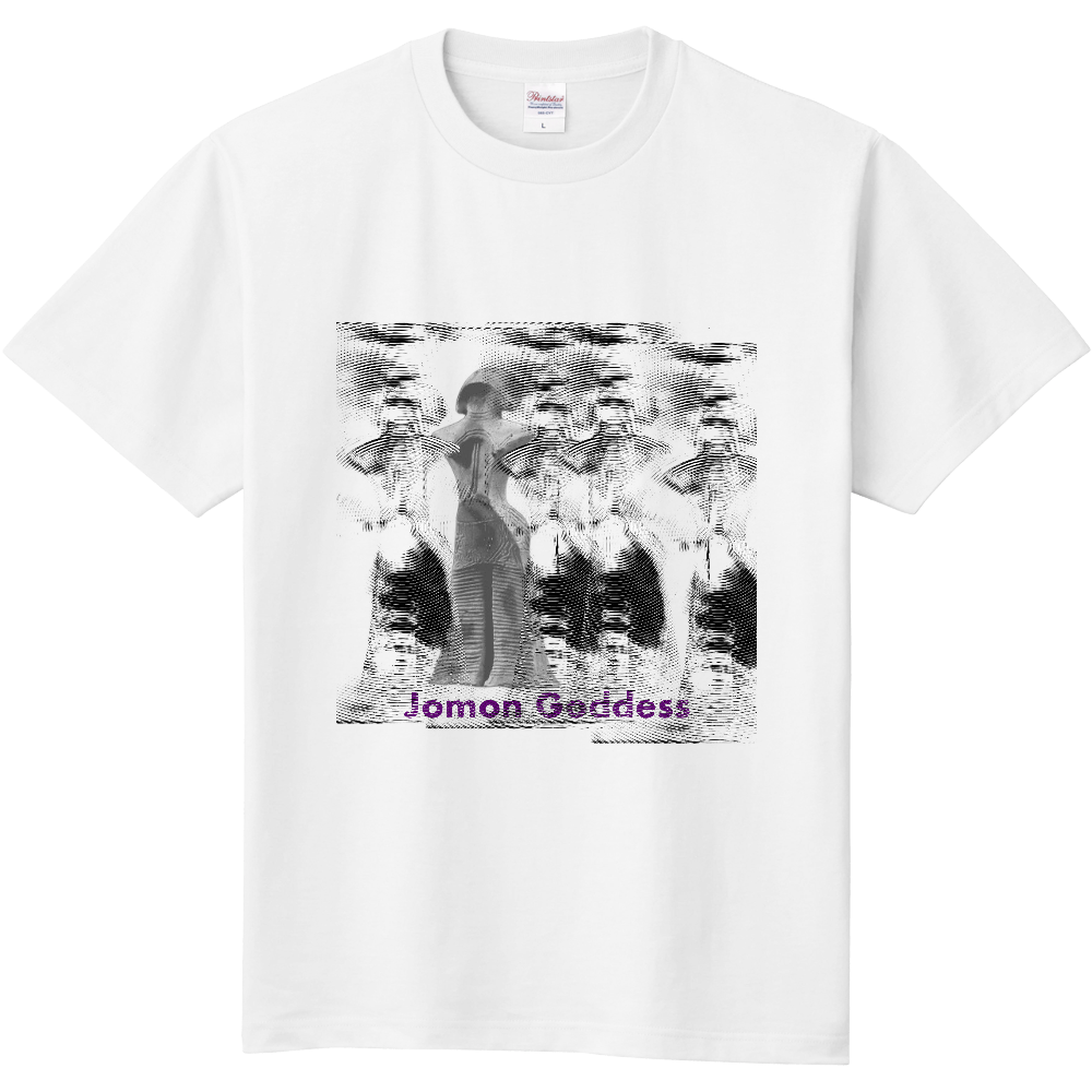 国宝「縄文の女神」を近未来風に再解釈したグリッチアート風デザイン。