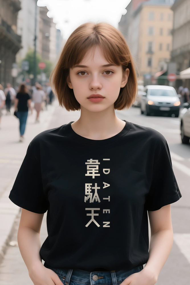 韋駄天 - 守護神の力強い文字デザインTシャツ