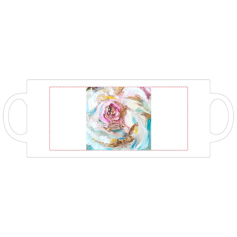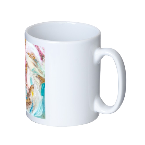 転写紙にインクをプリントし高温の熱をかけることで、インクを気化させマグカップに浸透させる加工方法です。マグカップに直接浸透させることで、表面には印刷した違和感(凸凹)が全く残りません。