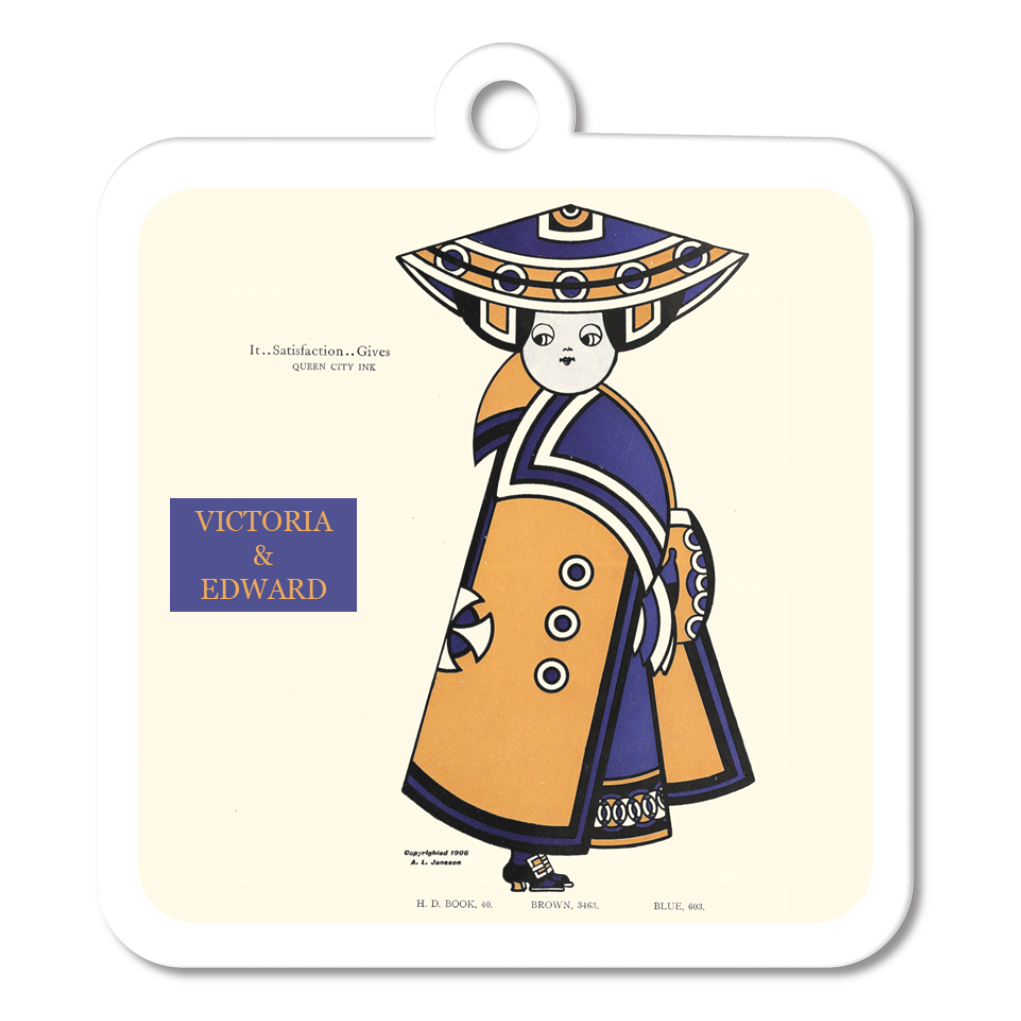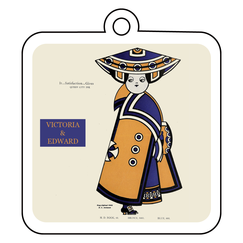 米国のイラストレーター、オーガスタス・ヤンソンが描いた、インクメーカーの広告をデザインしたキーホルダーです。