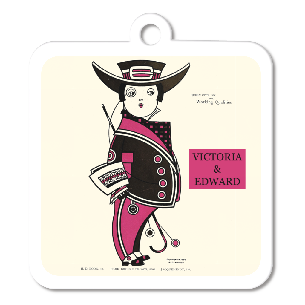 米国のイラストレーター、オーガスタス・ヤンソンが描いた、インクメーカーの広告をデザインしたキーホルダーです。