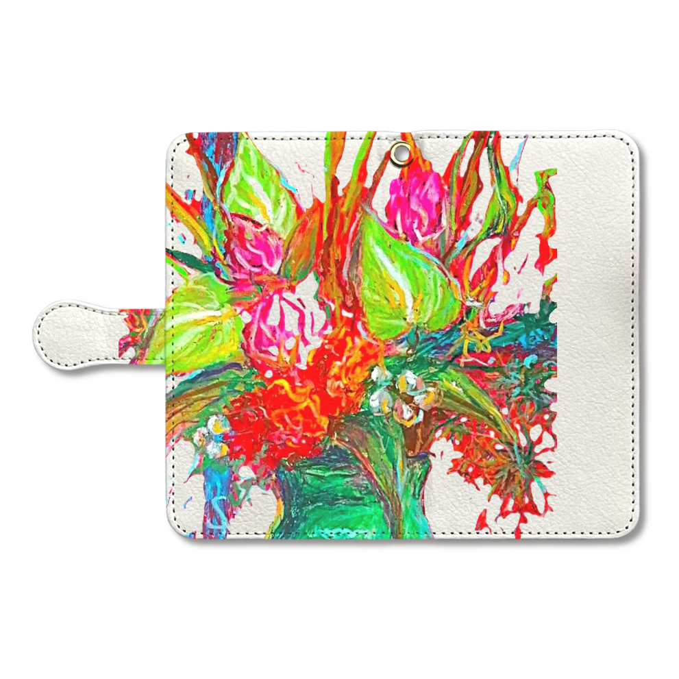 手帳部分:ポリウレタン樹脂(合成皮革)/ホワイト スマホ本体ケース:ポリカーボネート樹脂(プラスチック)/ホワイト 留め具部分:磁石(カバーに内蔵)