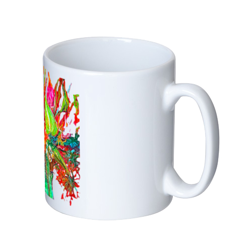 転写紙にインクをプリントし高温の熱をかけることで、インクを気化させマグカップに浸透させる加工方法です。マグカップに直接浸透させることで、表面には印刷した違和感(凸凹)が全く残りません。