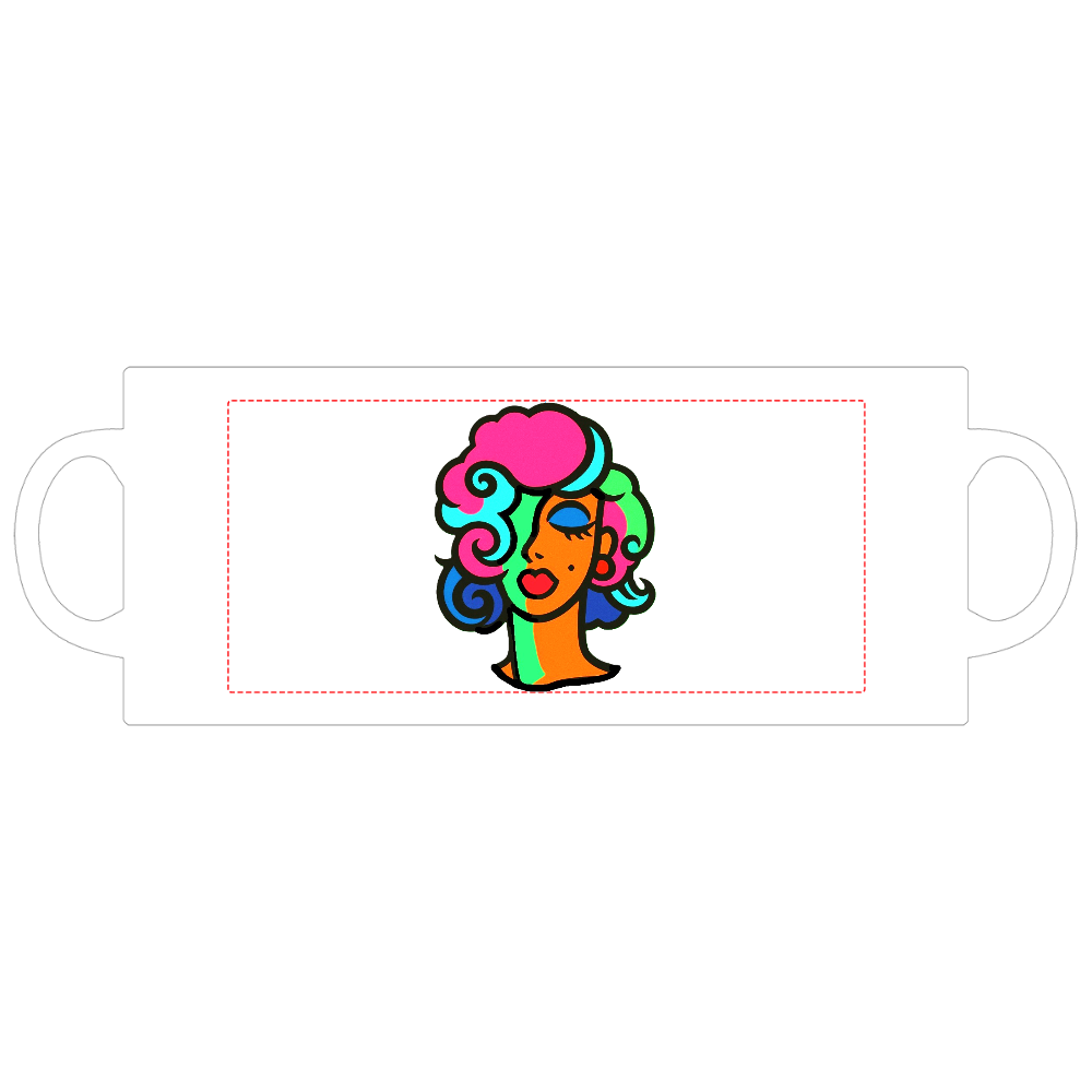 転写紙にインクをプリントし高温の熱をかけることで、インクを気化させマグカップに浸透させる加工方法です。マグカップに直接浸透させることで、表面には印刷した違和感(凸凹)が全く残りません。