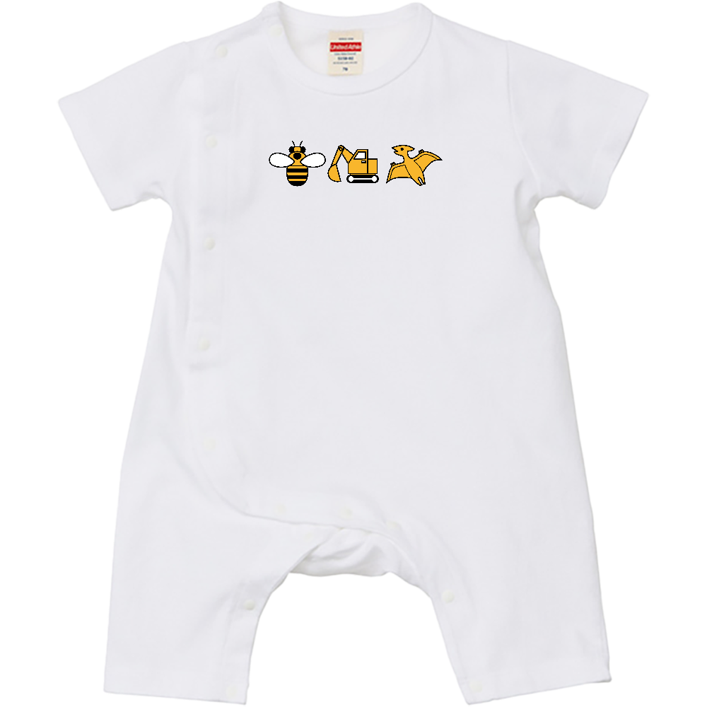 【黄色いもの】ベビーロンパース|80cm|ミツバチ・ショベルカー・プテラノドン