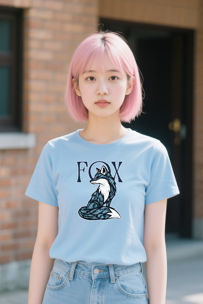 【神秘的な青いキツネのデザインTシャツ】