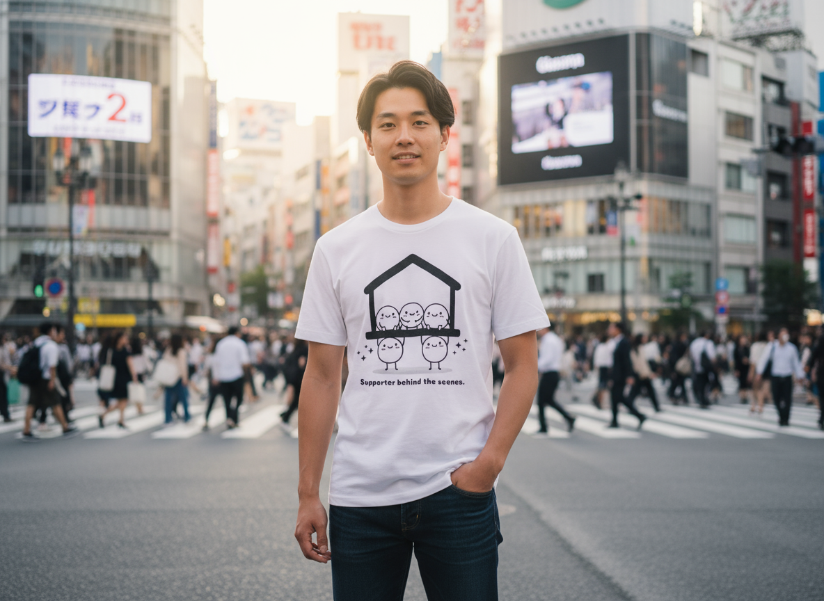 This design illustrates the saying “Supporter behind the scenes” in a cute way.