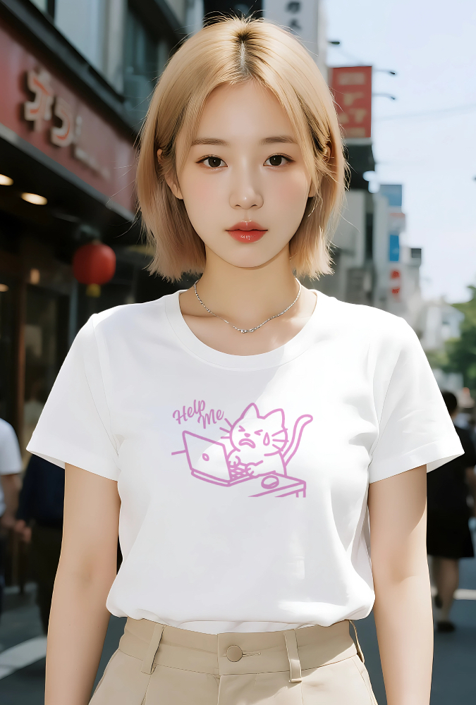 あなたもこの「HELP MEにゃんこ」に癒されて、笑顔を取り戻してみませんか?日常のストレスを和らげる、心温まるTシャツをお見逃しなく!