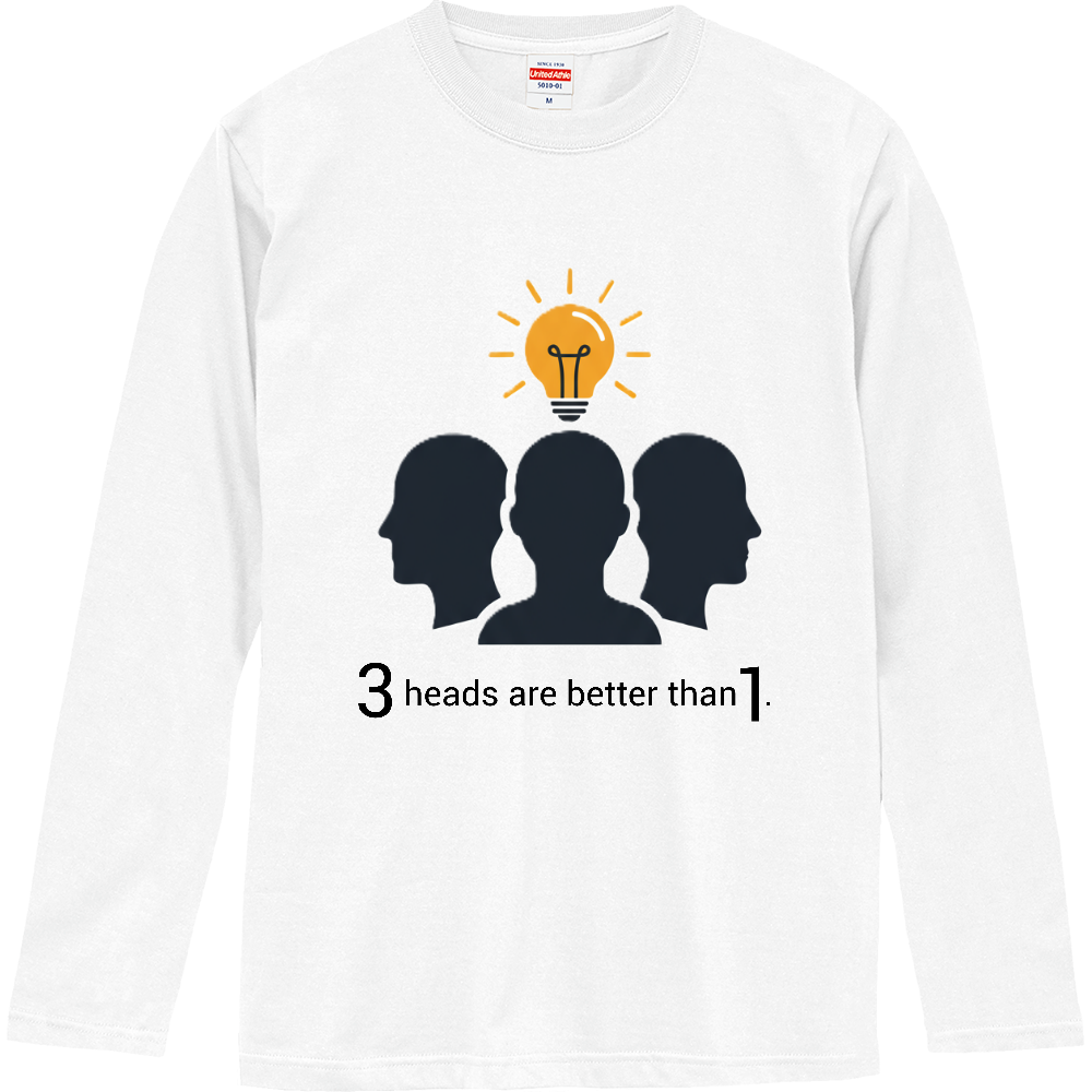 「三人寄れば文殊の知恵」をシンプルなイラストで表現しました。