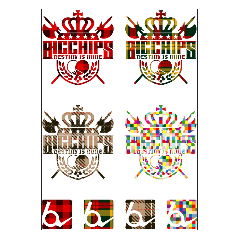 BIGCHIPS025 Emblem001 チェック4種set アイロンステッカー A4内