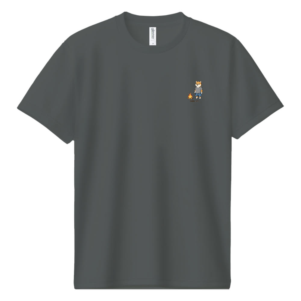 焚き火の熱気や、汗ばむアクティブなシーンでも快適に!我らがTAKIBI SHIBAくんの「ゆるさ」はそのままに、機能性に特化したドライTシャツです。