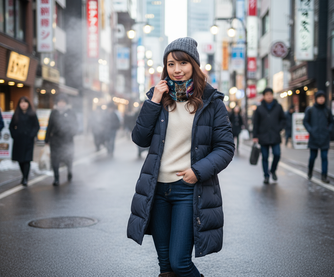 Space Catとネックウォーマーを合わせました。