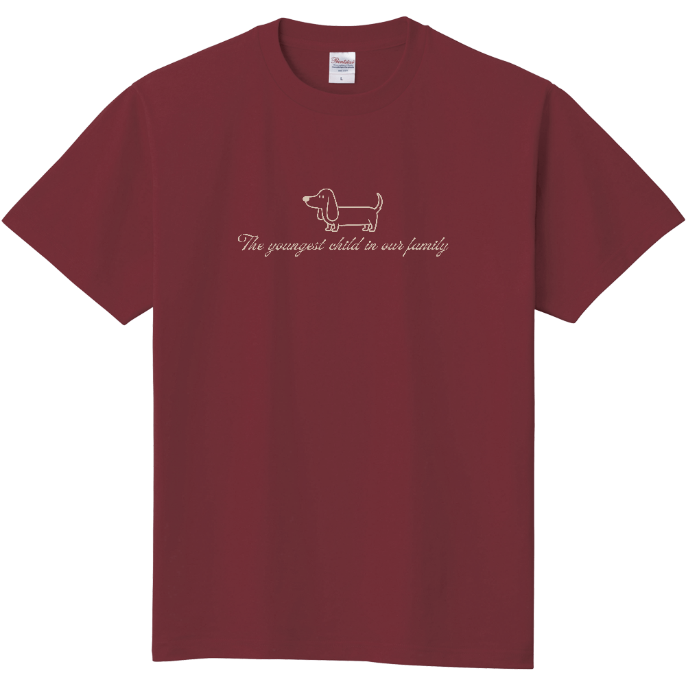このTシャツは、ドイツ原産の人気犬種**ダックスフンド(Dachshund)**のユニークで愛嬌のある姿を、スタイリッシュな線画で表現したアパレルアイテムです。