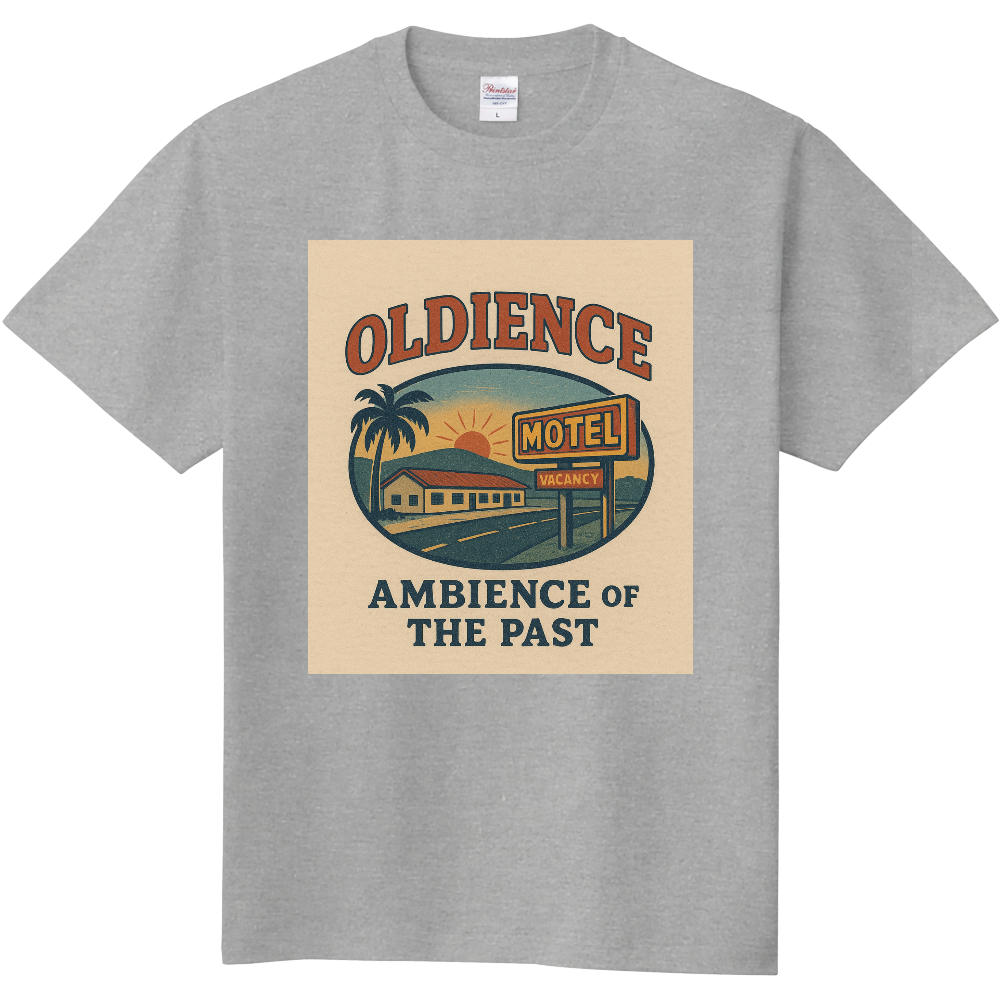 ヴィンテージ広告風にデザインしたOLDIENCEオリジナルTシャツ。