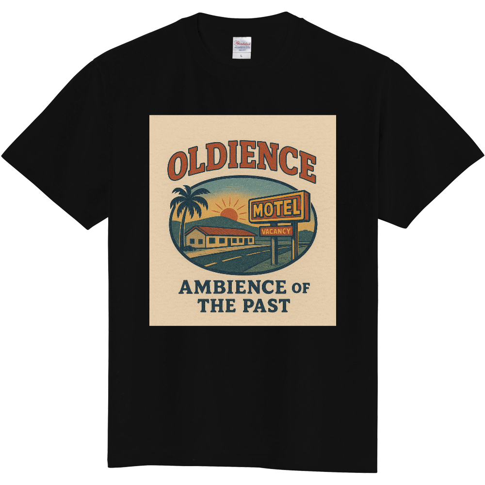 ヴィンテージ広告風にデザインしたOLDIENCEオリジナルTシャツ。