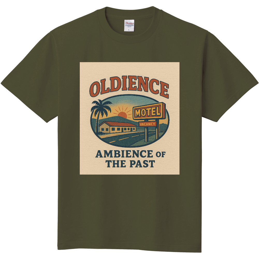 ヴィンテージ広告風にデザインしたOLDIENCEオリジナルTシャツ。