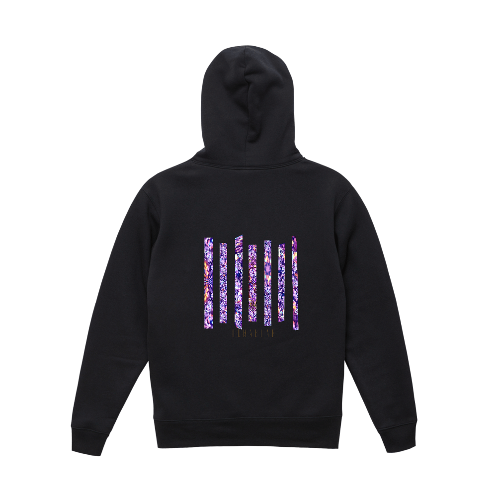 パーカーにはフードがある為 無料デザインで作成して頂いたTシャツのプリントの位置を変え パーカーにプリントし作成しました。