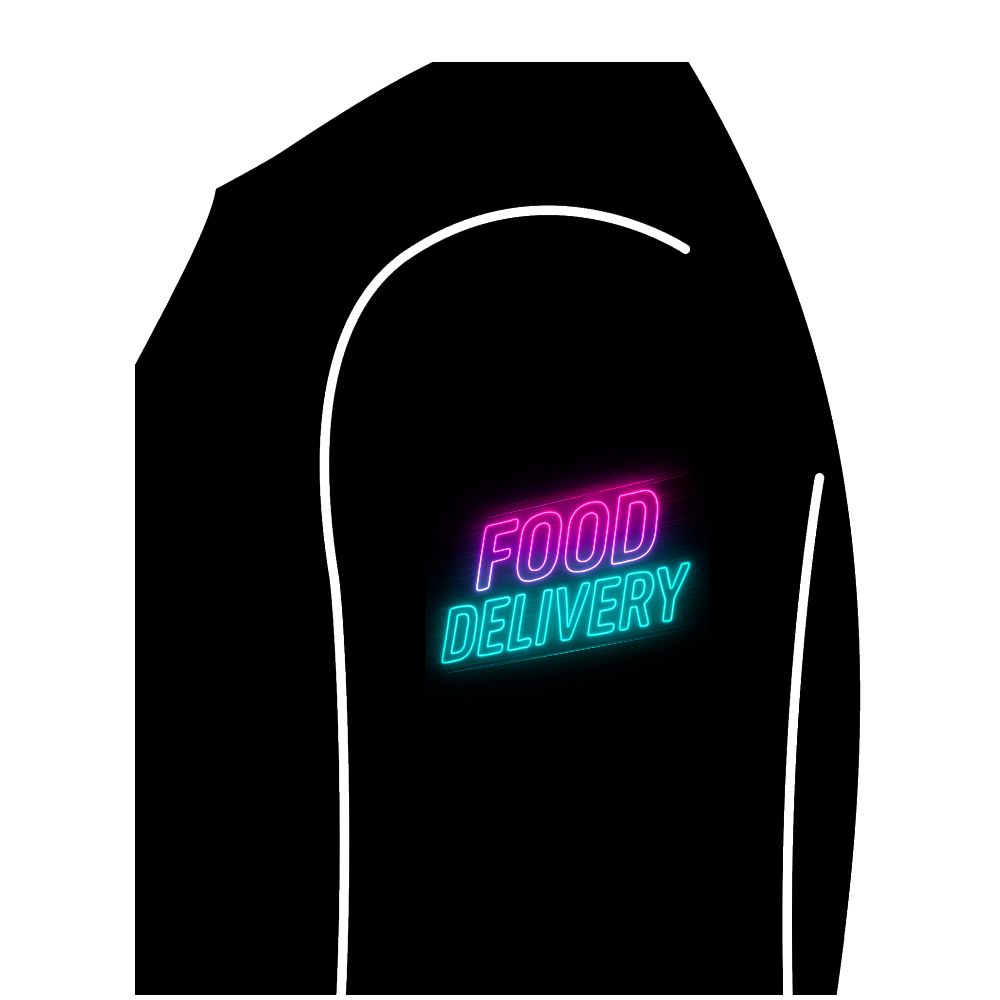 左腕部分のプリントは、配達バッグを背負った時も見える絶妙な位置。「プロのデリバリーワーカー」としての誇りを、さりげなく主張できます。
