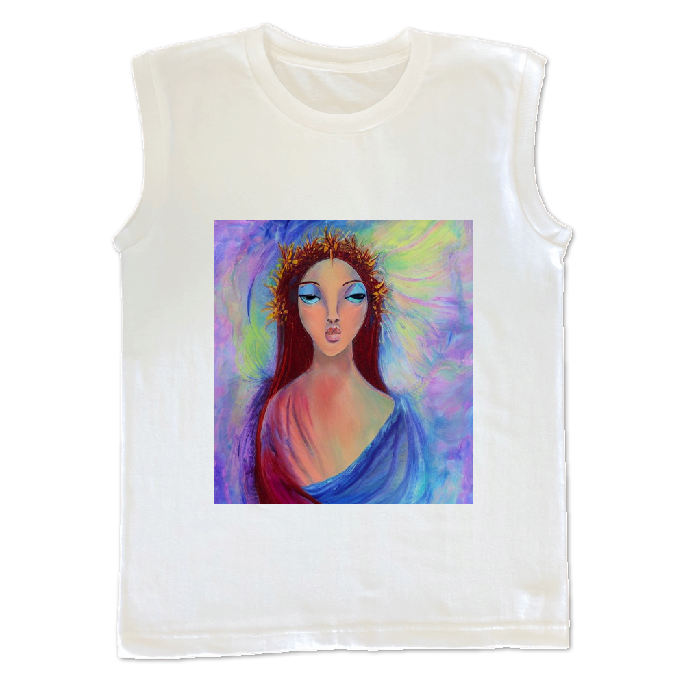 男性用タンクトップですと型やサイズ感が納得いかず、敢えてウィメンズノースリーブ(Mサイズのみ)を作成。胸筋があるためぴちぴちですが、二の腕はバッチリ!身長170cm前後の細身の筋肉質タイプの方ならカッコいいはずです。Lサイズがあると良いです、お願いします!