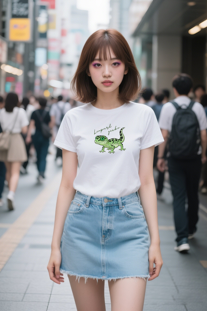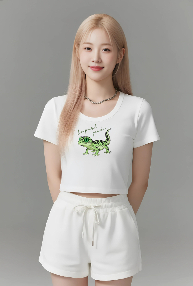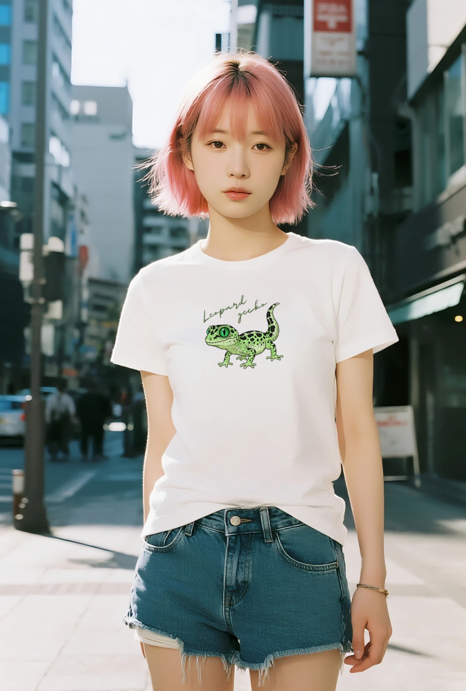 このデザインは、レオパードゲッコーの魅力を最大限に引き出すために、鮮やかなライムグリーンと、特徴的な黒いスポット模様を強調して描かれています。まるで宝石のようなエメラルドグリーンの瞳は、見る人を惹きつけるクールなアクセントに。単なるペットイラストではなく、ファッションアイテムとして成立するよう、デザイン性に徹底的にこだわりました。
