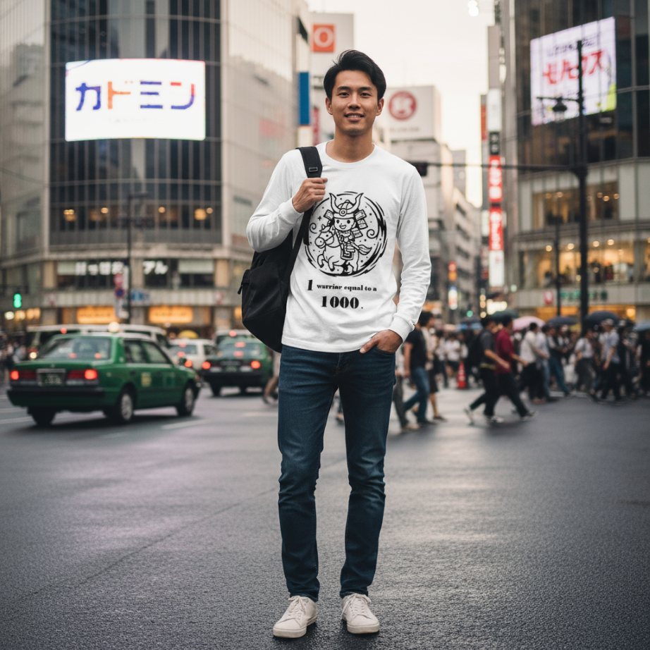 「一騎当千(one warrior equal to a thousand)」をかわいらしくデザインしました。