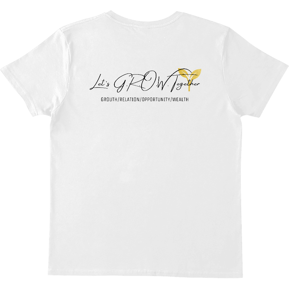 正面には胸元にG.R.O.W.(ブロック体)のシンプルなロゴを、背面にはG.R.O.W.のテーマであるLet’s G.R.O.W. Togetherを配したデザイン。