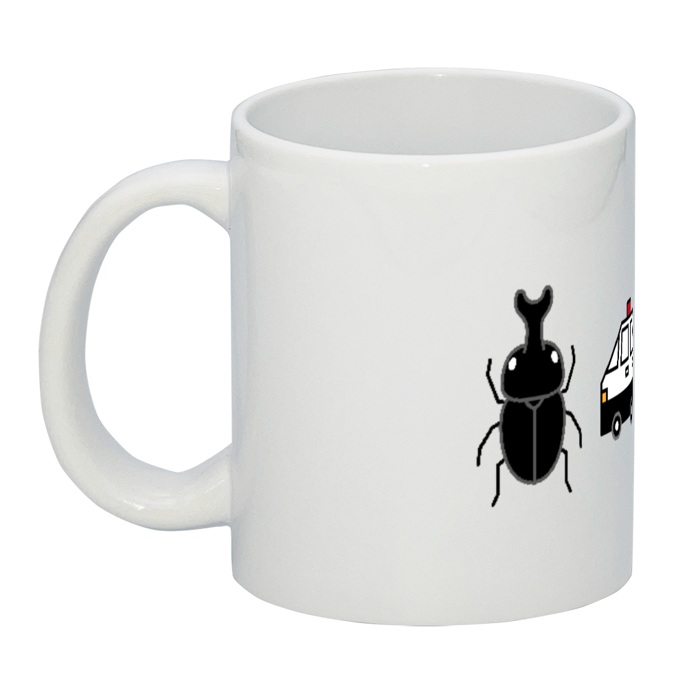 【黒いもの】定番マグカップ|カブトムシ・パトカー・アンキロサウルス