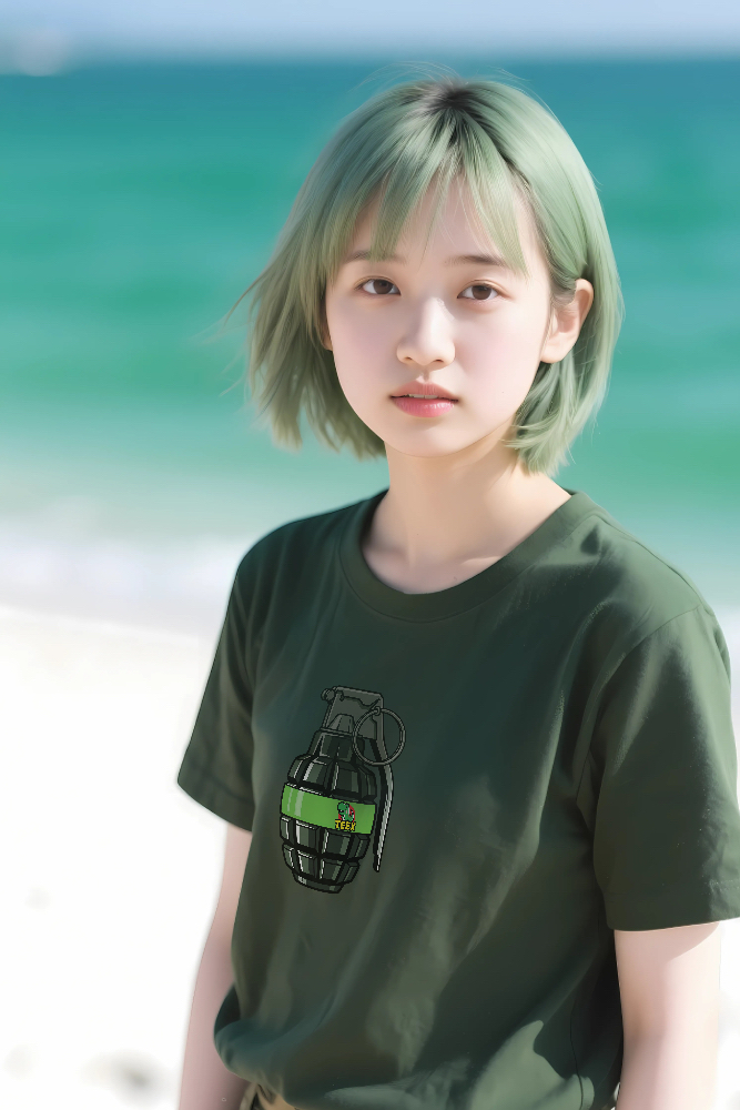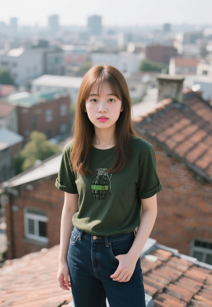 あなたのファッションに、一撃のインパクトとユーモアをプラスする「フラグメンテーショングレネード」が登場しました。一見するとハードコアなアイテムに見えますが、よく見ると恐竜のキャラクター「TEEX」がキュートに描かれた、遊び心満載のデザインです。このデザインを着れば、あなたの個性はまるで手榴弾が爆発するかのように、周囲に強烈な印象をまき散らすこと間違いなし!