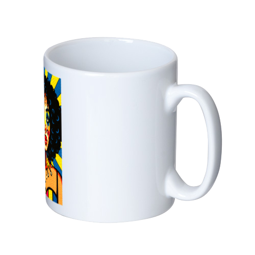 転写紙にインクをプリントし高温の熱をかけることで、インクを気化させマグカップに浸透させる加工方法です。マグカップに直接浸透させることで、表面には印刷した違和感(凸凹)が全く残りません。