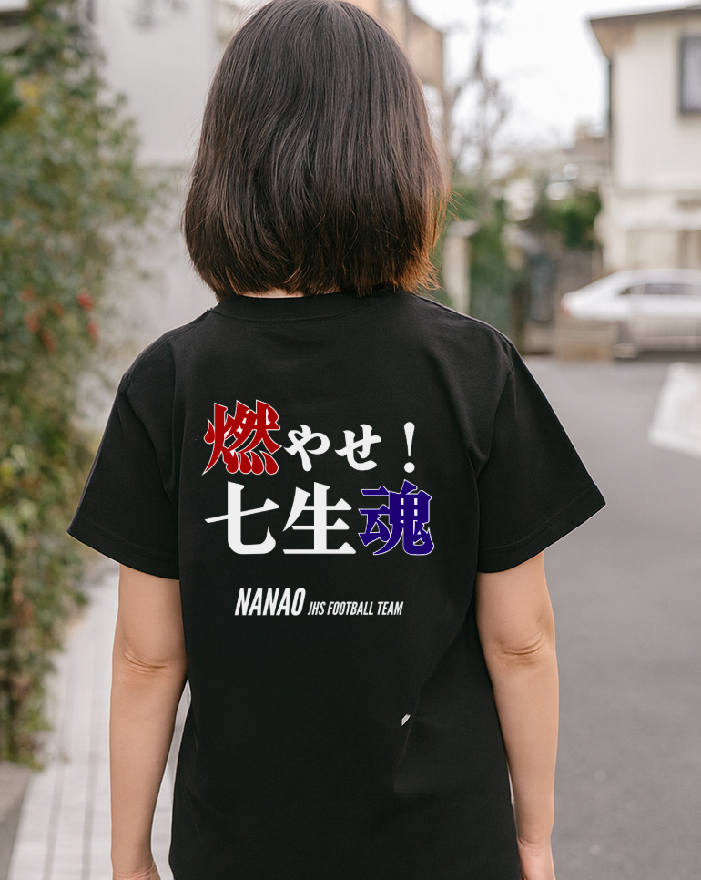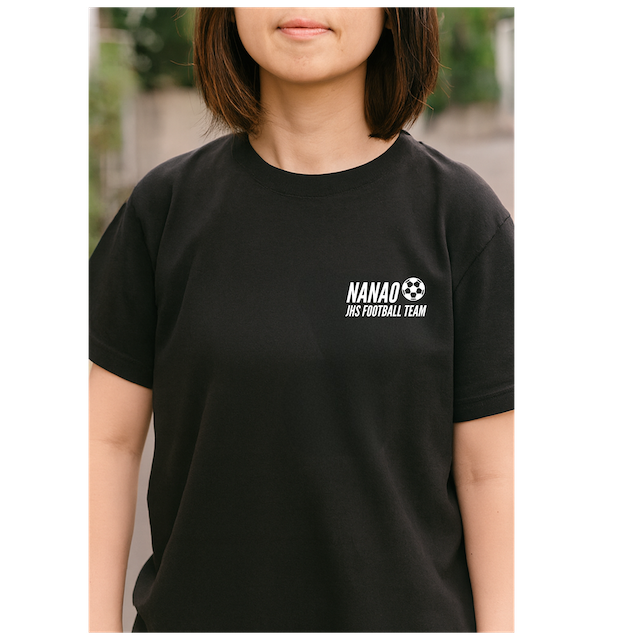 七生中サッカー部の保護者向けの応援Tシャツです。胸にはワンポイント入り。