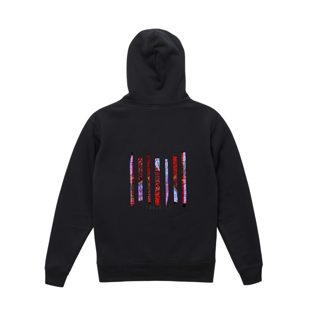 パーカーにはフードがある為 以前無料デザインでTシャツ作成してプリントの位置を変え パーカーにプリントしてみたした。