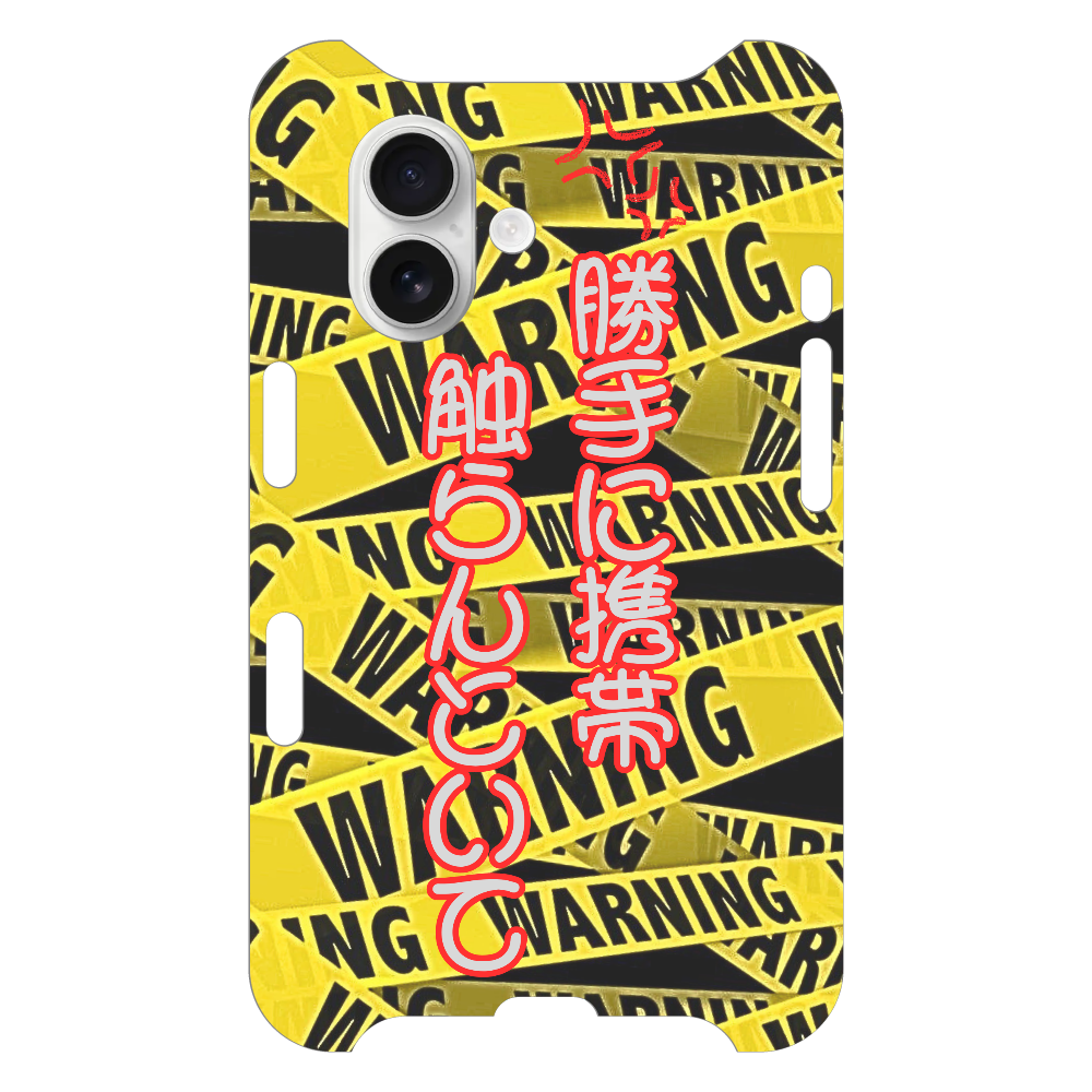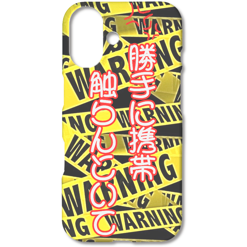 無数に張り巡らされたWARNINGテープ…!その中央に光る関西弁の警告文――「勝手に携帯触らんといて!」そう、これはスマホを守るための最終防衛ライン!!ツッコミ待ちなユーモアと、ちょっとした威圧感の絶妙バランス!カフェでも職場でも、スマホを置くだけで視線集中!「触ったらアカン」オーラを放つ最強の護身(?)ケースです!あなたのスマホ、あなたのルール。触ったら…知らんで!?