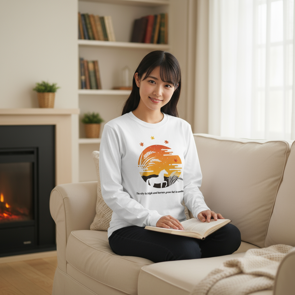 [ロングTシャツ] The sky is high and horses grow fat in autumn