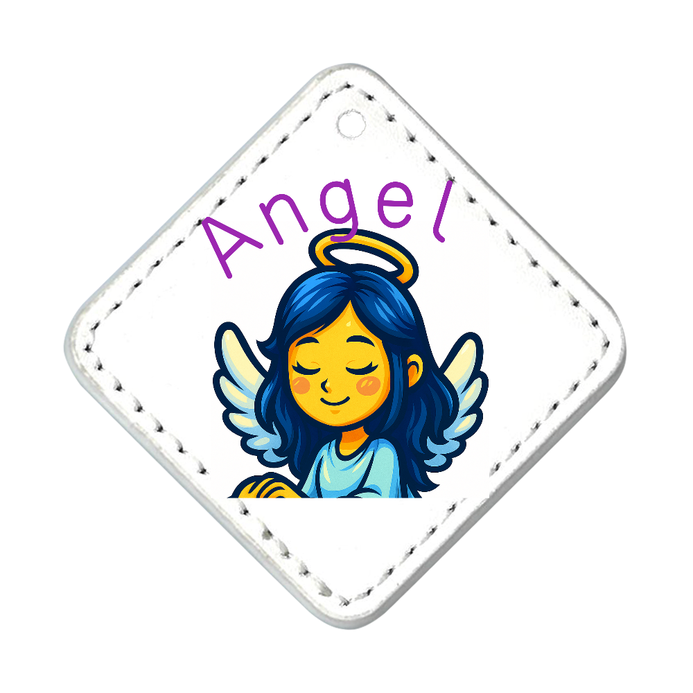 「PU製合皮レザープレートチャーム ひし形 ミラー付き「SUNBRO」エンジェル(Angel)