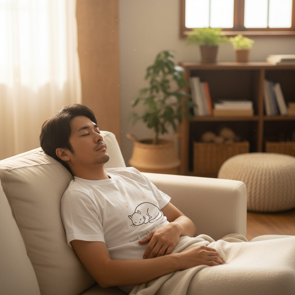 「果報は寝て待て(Good things come to those who wait.)」をかわいらしくデザインしました。