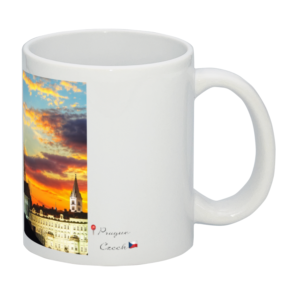 オレンジ色に染まる秋のプラハを切り取った、心温まる一杯。プラハ城と古都の街並みが夕陽に包まれる瞬間をデザインしました。忙しい日常の中でも、旅の余韻を感じられる特別なマグです。数量限定販売。