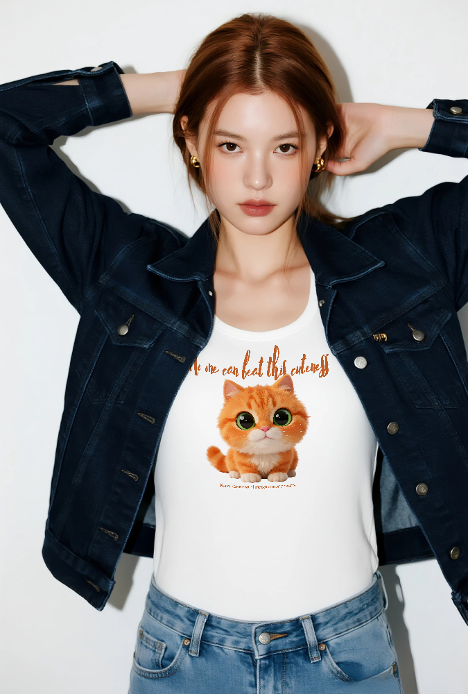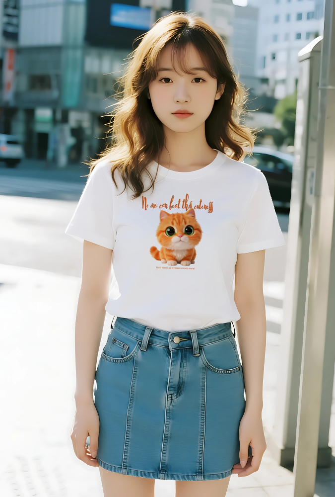 「No one can beat this cuteness(誰もこの可愛さには敵わない)」というメッセージが示す通り、この子猫のキュートさはまさに究極。普段使いはもちろん、ちょっとしたお出かけや友人との集まりでも、周囲の注目を集めること間違いなしです。着るたびに心が癒され、周りの人にも笑顔をもたらす、そんな魔法のようなTシャツです。